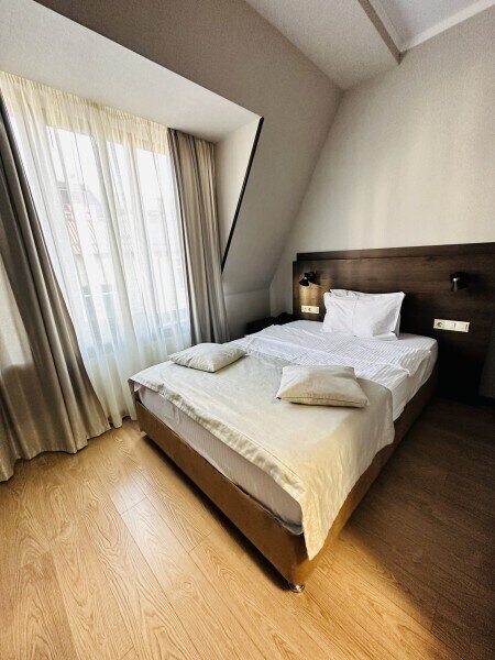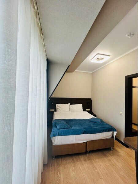 В комнате предусмотрено наличие либо одной двуспальной, либо двух односпальных кроватей. Номер оборудован всем необходимым для комфортного отдыха.