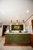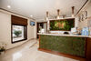 Первый этаж представлен в стиле «весна», оформленном в современном эко-стиле. Зона ресепшен украшена панно из настоящего мха, которое функционирует не только как декоративный элемент, но и обогащает помещение кислородом.