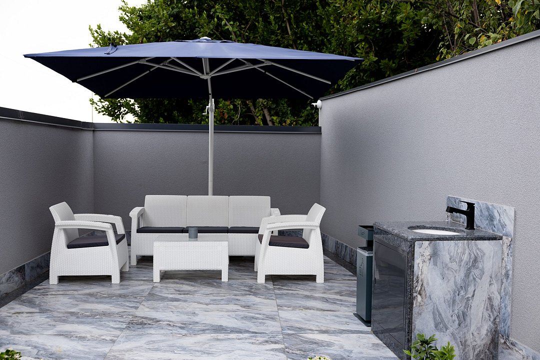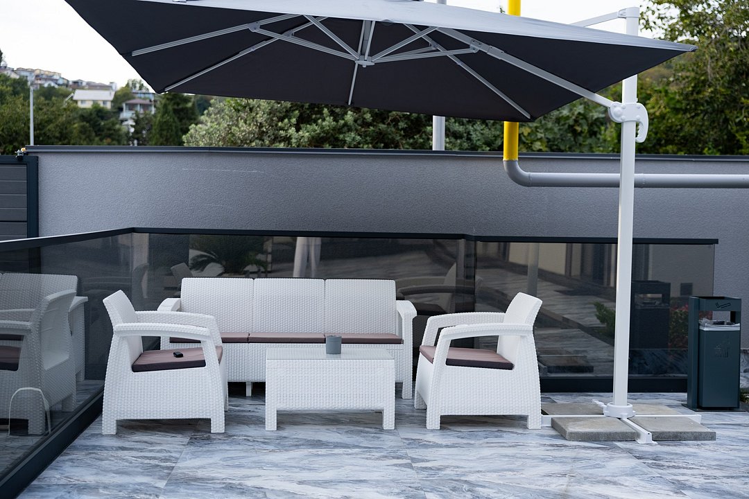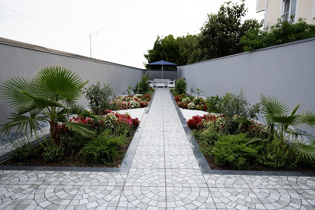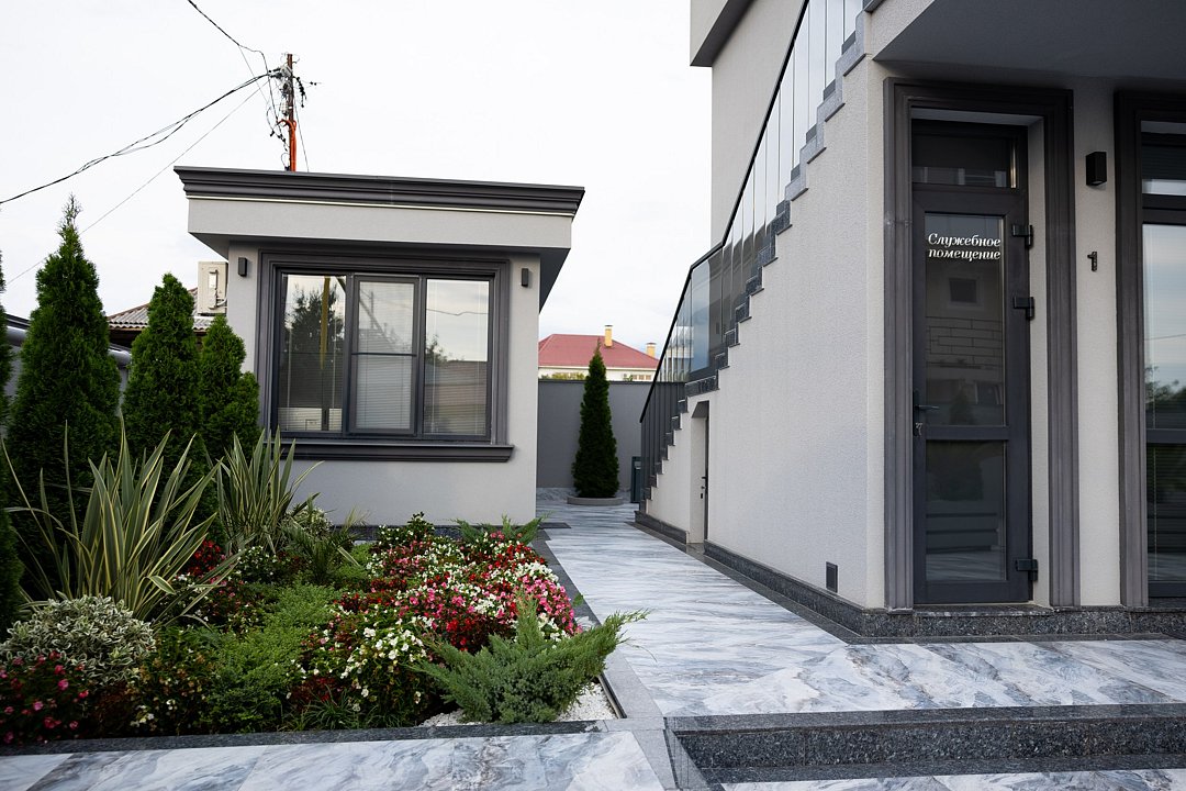 На территории есть собственная прачечная, две зоны отдыха (включая зону барбекю), парковка и мини-сад из плодовых и вечнозелёных деревьев и кустарников. Имеется своя котельная, позволяющая работать системе тепловодоснабжения бесперебойно и в автономном режиме.