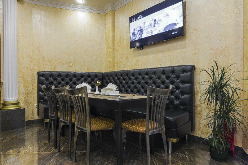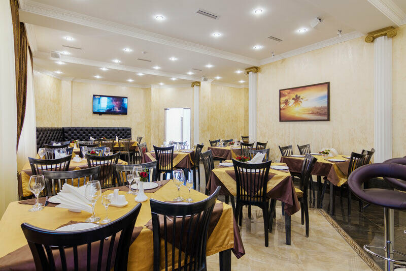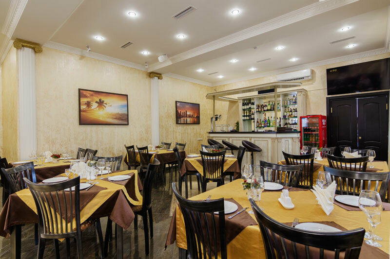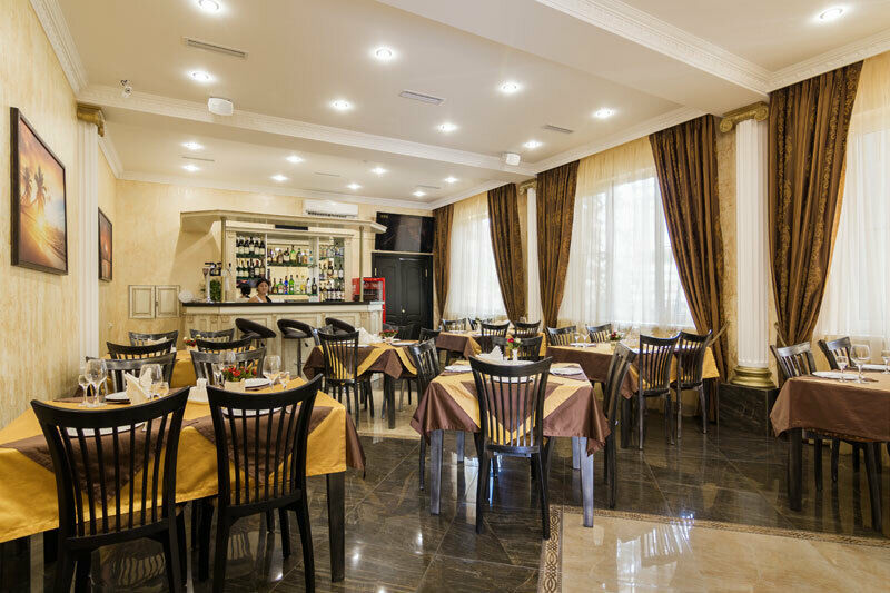 Завтрак в ресторане с 8:00 до 11:00. Шведский стол, с учётом количества постояльцев, очень богатый. Лимонад собственного производства. Сосиски, 2-3 блюда из яиц (яйца или яичница, омлет пустой и с наполнителями (помидоры, фасоль и т.п.)), 1 вид гарнира (пюре, жареные картофель или овощи, тушёная капуста, гречка), молочная каша. Нарезка сырная и колбасная (по 3 вида), помидоры и огурцы или какой-нибудь салат. Один вид выпечки (блины, оладьи, нарезанные рулеты), 2 вида варенья и сгущёнка. Два вида сухих завтраков (хлопья и шарики), к ним молоко. Нарезка фруктов. Сметана, горчица и несколько видов соусов. 4 вида чая, 4-5 видов растворимого кофе и кофе по-турецки (самообслуживание). Всё выложено понемногу, но всё постоянно подносят. И всё это умещается на столе длиной 3-4 метра.