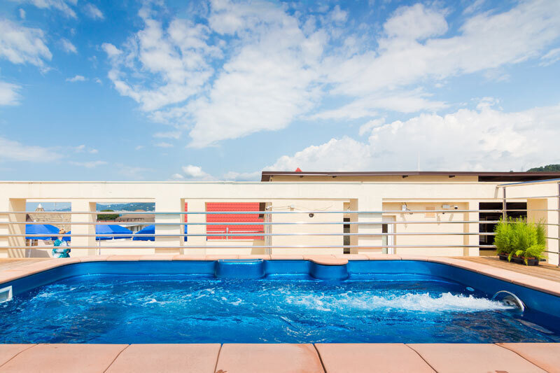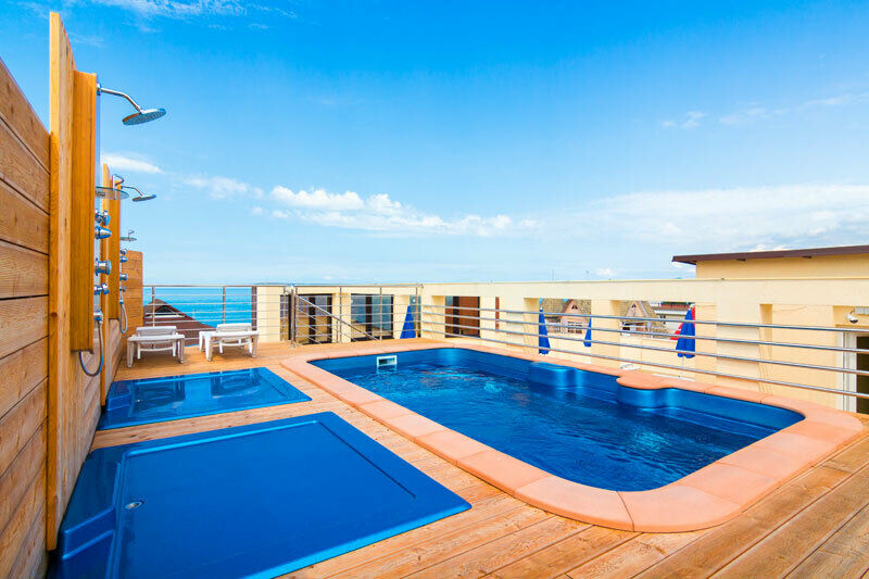 Ну, и изюминка отеля: бассейн с подогревом на крыше. Размеры примерно 5 на 2,5 метра.