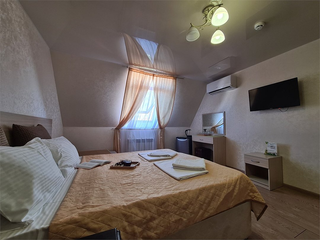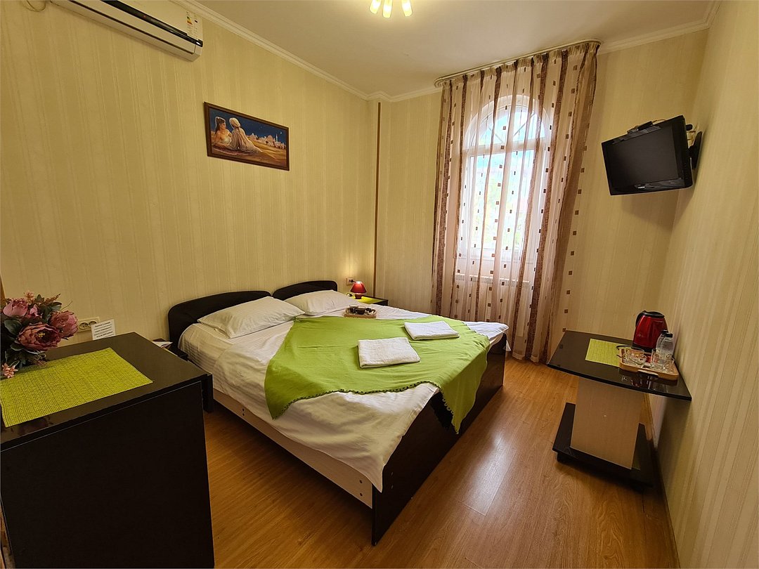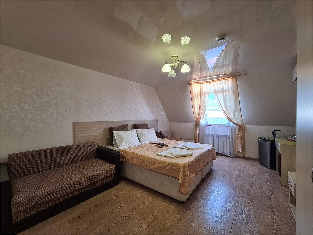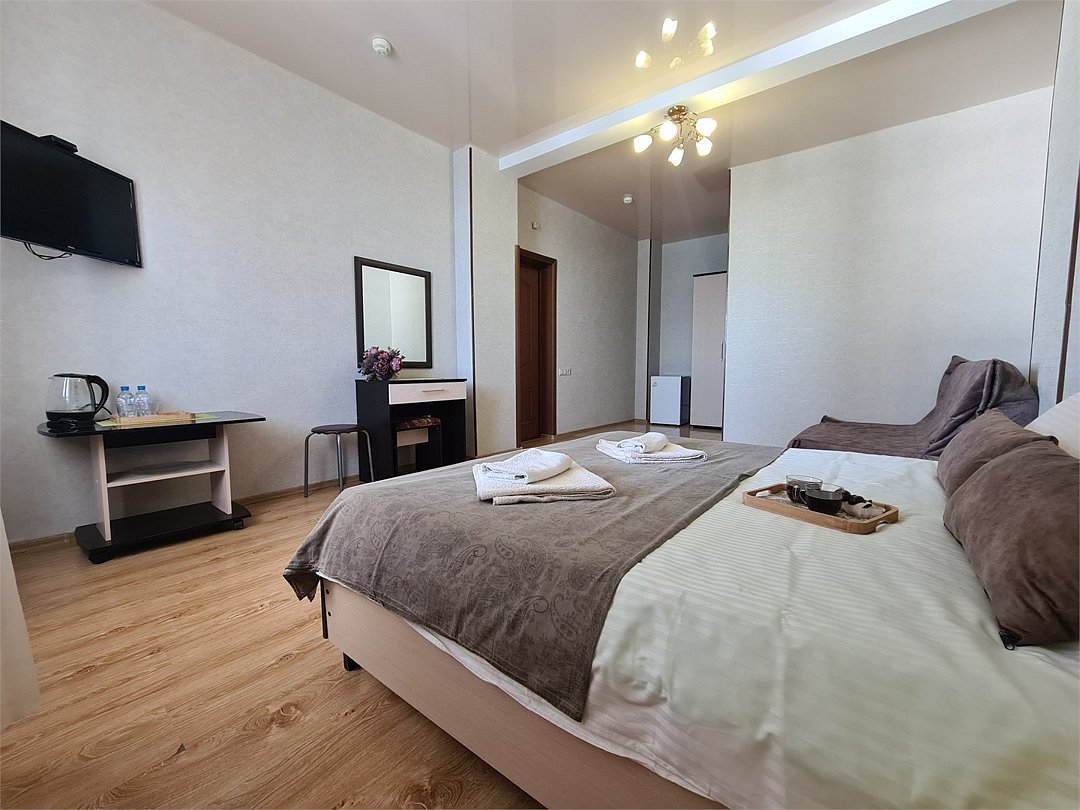 Просторный светлый номер,солнце в первой половине дня.В номере есть всё необходимое для вашего отдыха.Сплит ,ТВ -20 каналов,туалетный столик с зеркалом,просторный совмещённый сан.узел. Взимается залог в размере 2000рУслуги и удобства