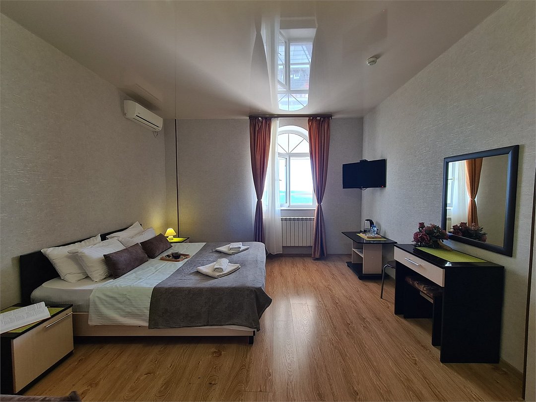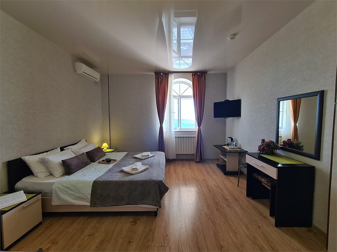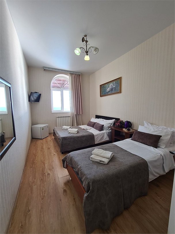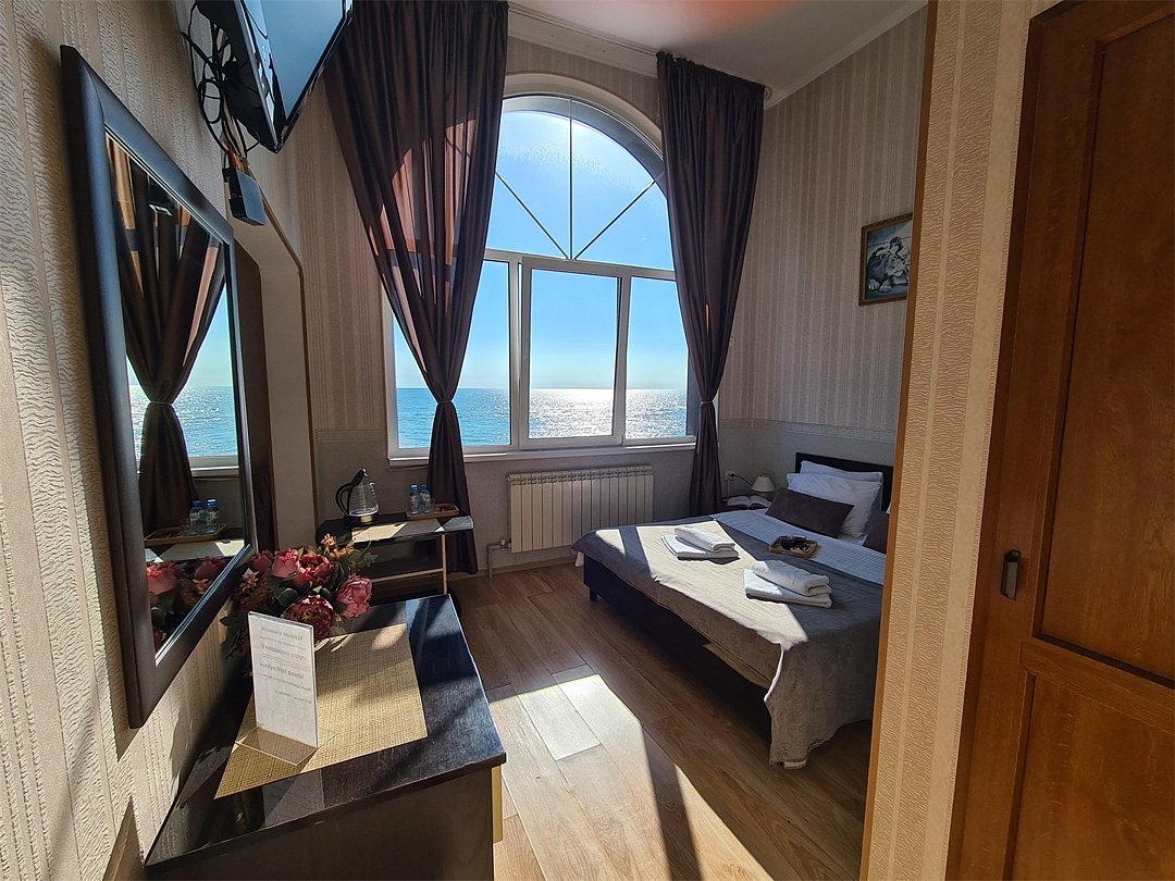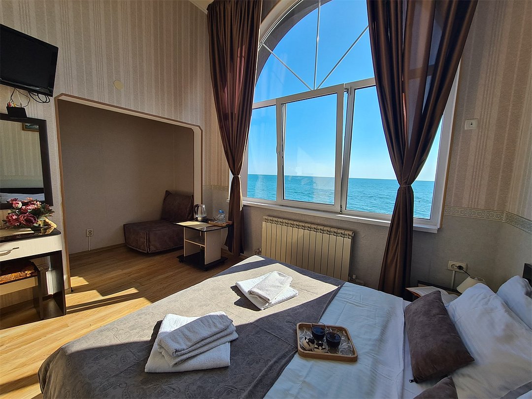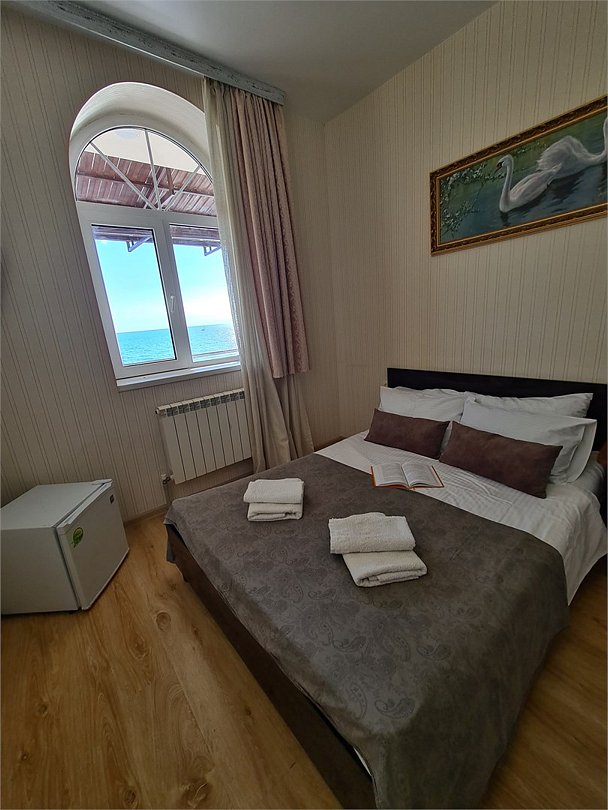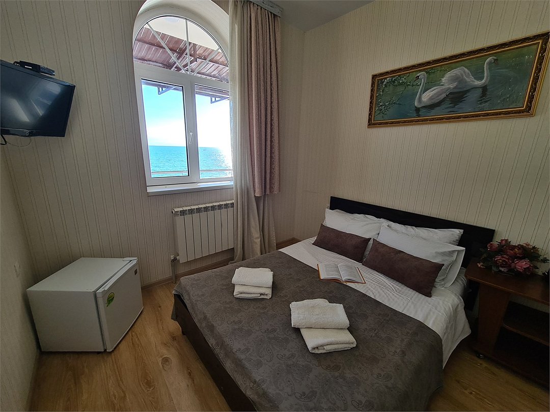 Номера данной категории расположены на 2,3-м этажах.Вид на море . Двуспальная кровать и односпальная кровать или двуспальная кровать + раскладной диванчик. Взимается залог в размере 2000р.Услуги и удобства