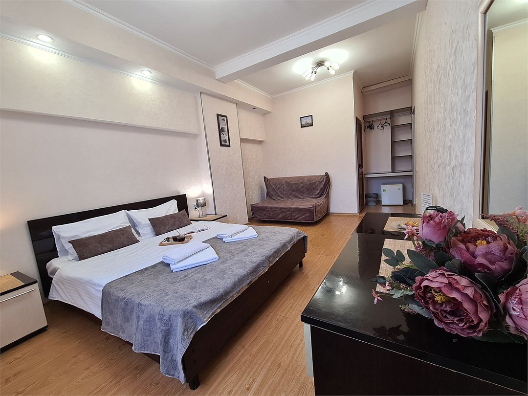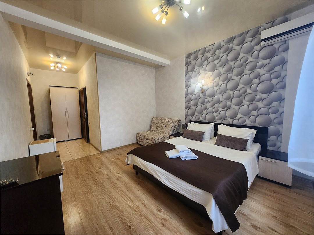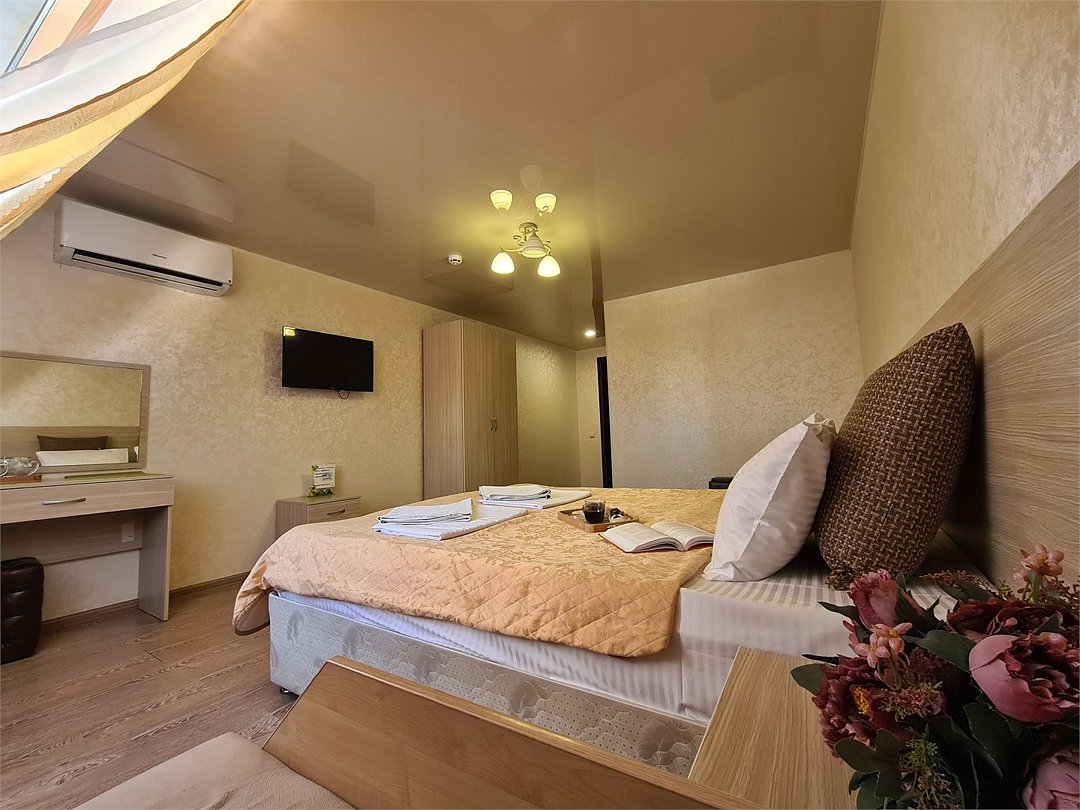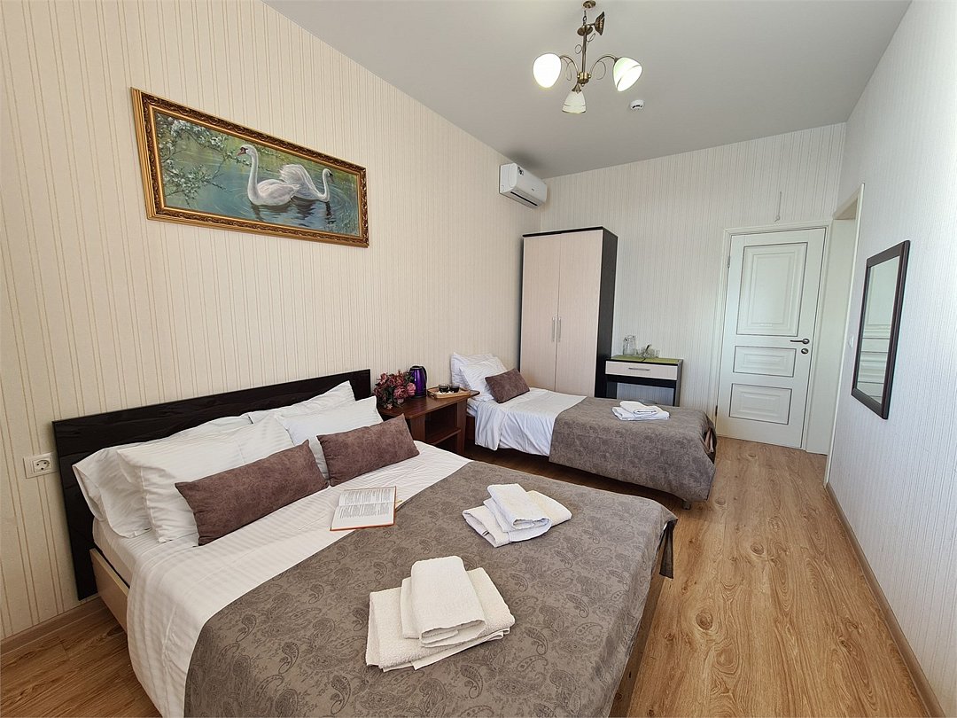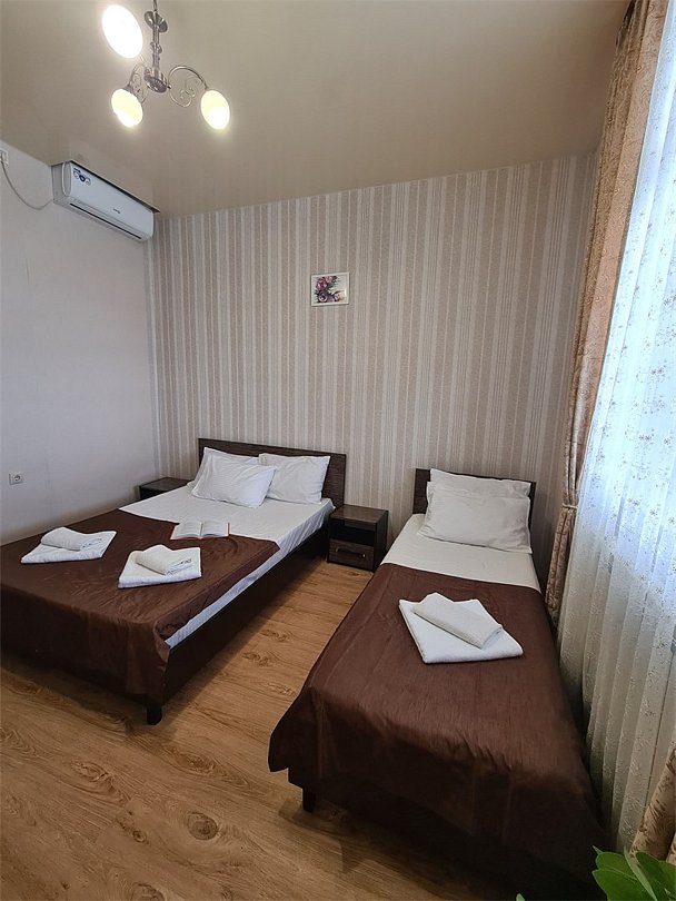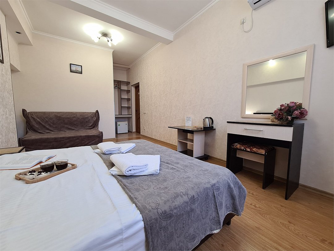 Номера данной категории расположены на 2,3-м этажах.Вид на море . Двуспальная кровать и односпальная кровать или двуспальная кровать + раскладной диванчик. Взимается залог в размере 2000р.Услуги и удобства