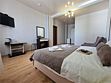 Wi-Fi, кондиционер, фен, ванная комната, санузел, банные полотенца, пляжные полотенца, тапочки, двуспальная кровать, гладильная доска, шкаф для одежды, журнальный столик, зеркало, пуфики, чайник, раковина, отопление, душ, вид на город, кресло, ламинат, стаканы, туалетный столик, туалетный столик, туалетные средства, туалет, телевизор с плоским экраном, мини-холодильникВ гостиничном номере