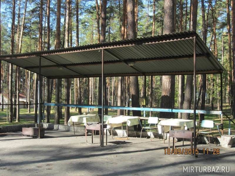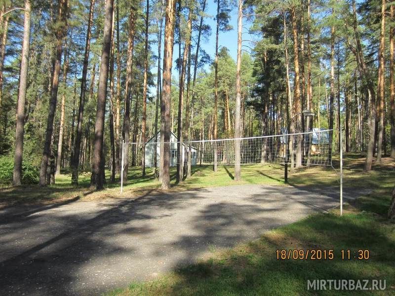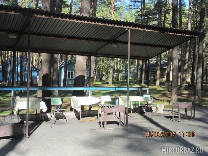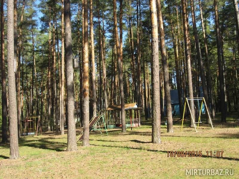 База отдыха расположена в экологически чистом уголке в сосновом бору на берегу большого Петровиченского озера, где можно купаться, ловить рыбу, любоваться дикими утками.