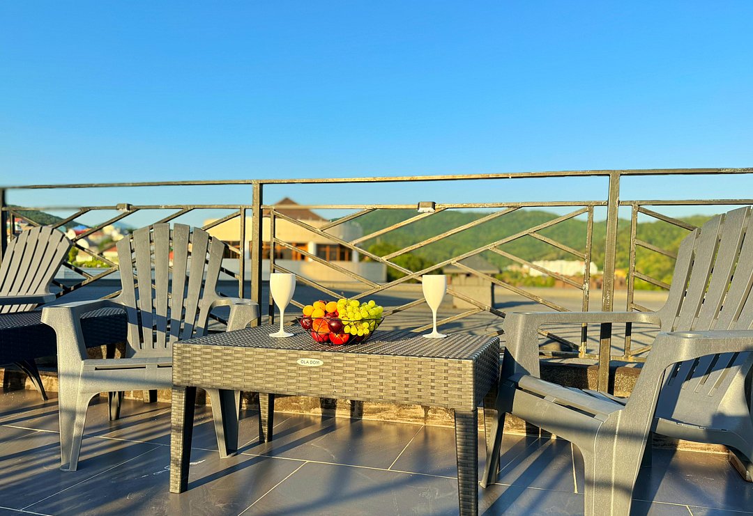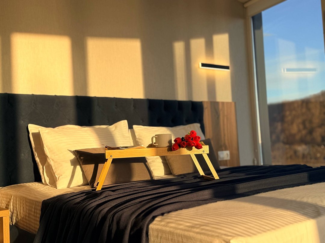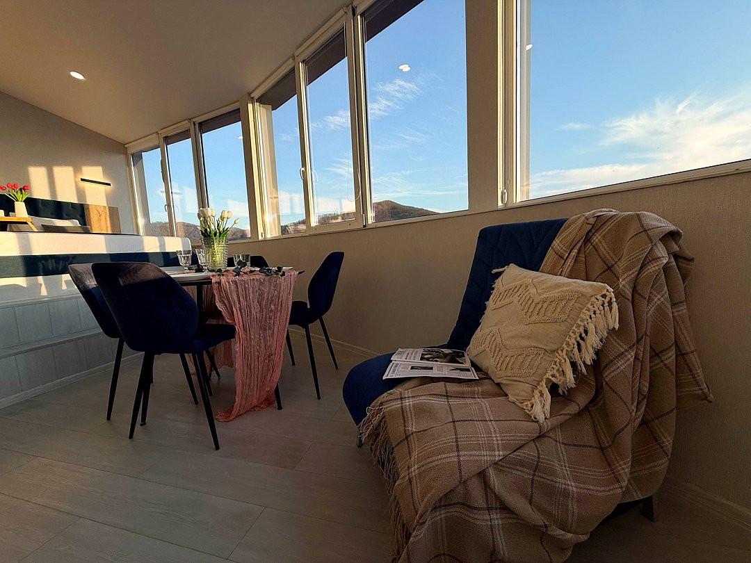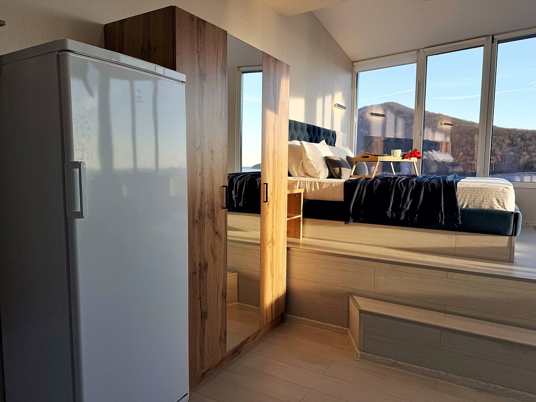 Важно: апартаменты расположены на 7 этаже (лифт до 5 этажа, последние 2 этажа — пешком). Но ради панорамного вида на море и горы это небольшое усилие превратится в ваше главное преимущество.