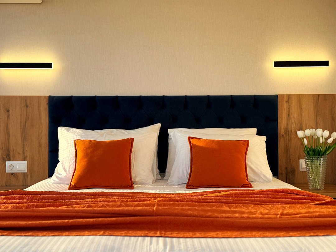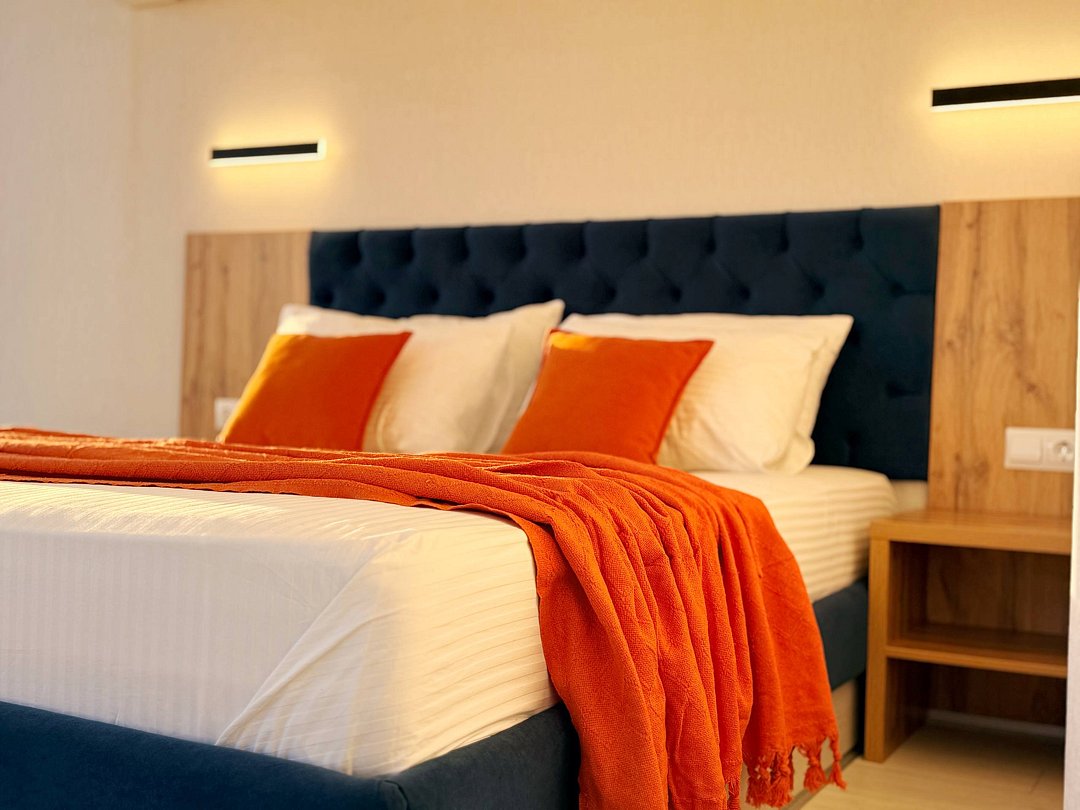 - 2 двуспальные кровати 160×200 и 180×200 с новым ортопедическим матрасом и премиум-бельем;