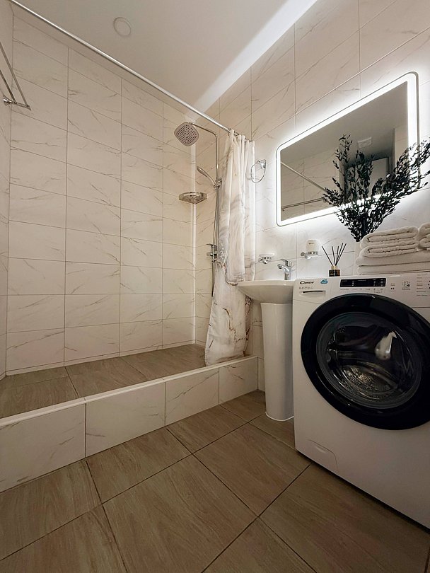 - совмещенный санузел со стиральной машиной и свежим ремонтом.