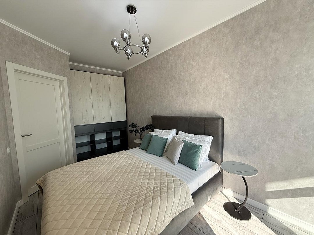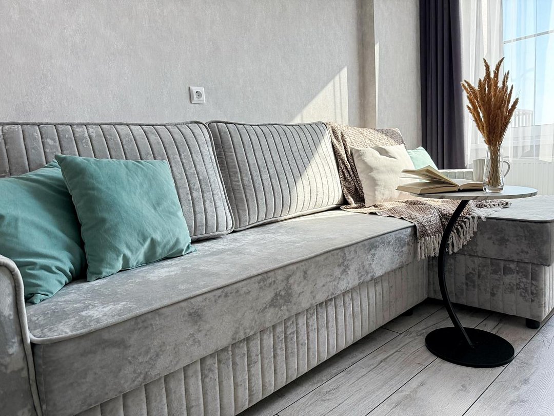 - спальные места: удобная кровать с ортопедическим матрасом (160x200), раскладной двуспальный диван с ортопедическим топпером (160x200).