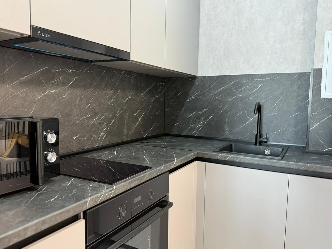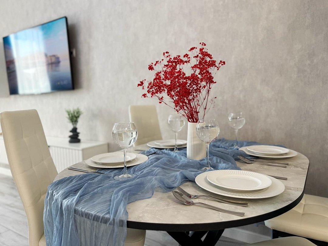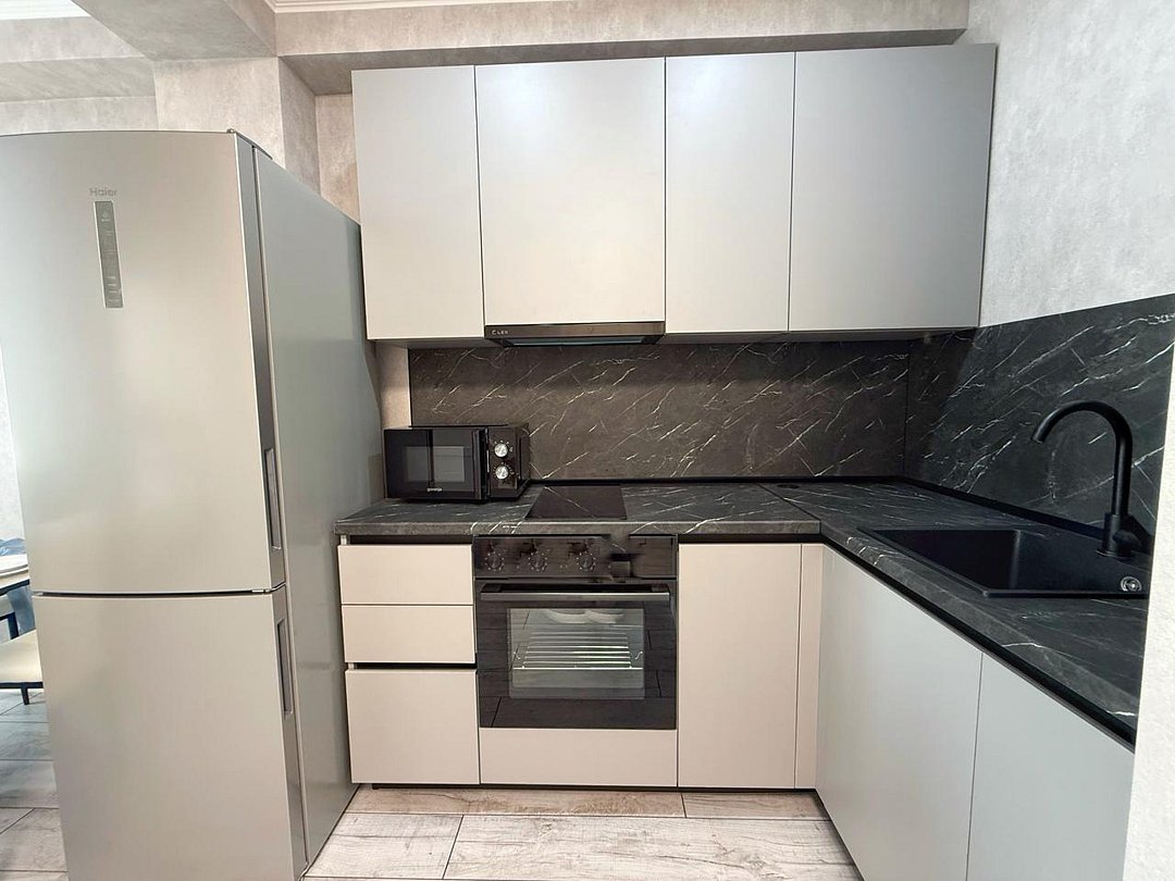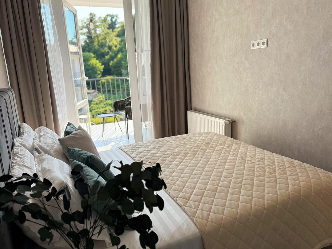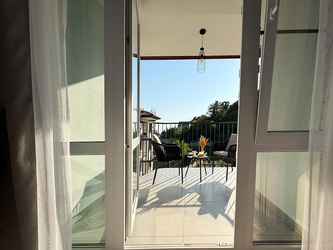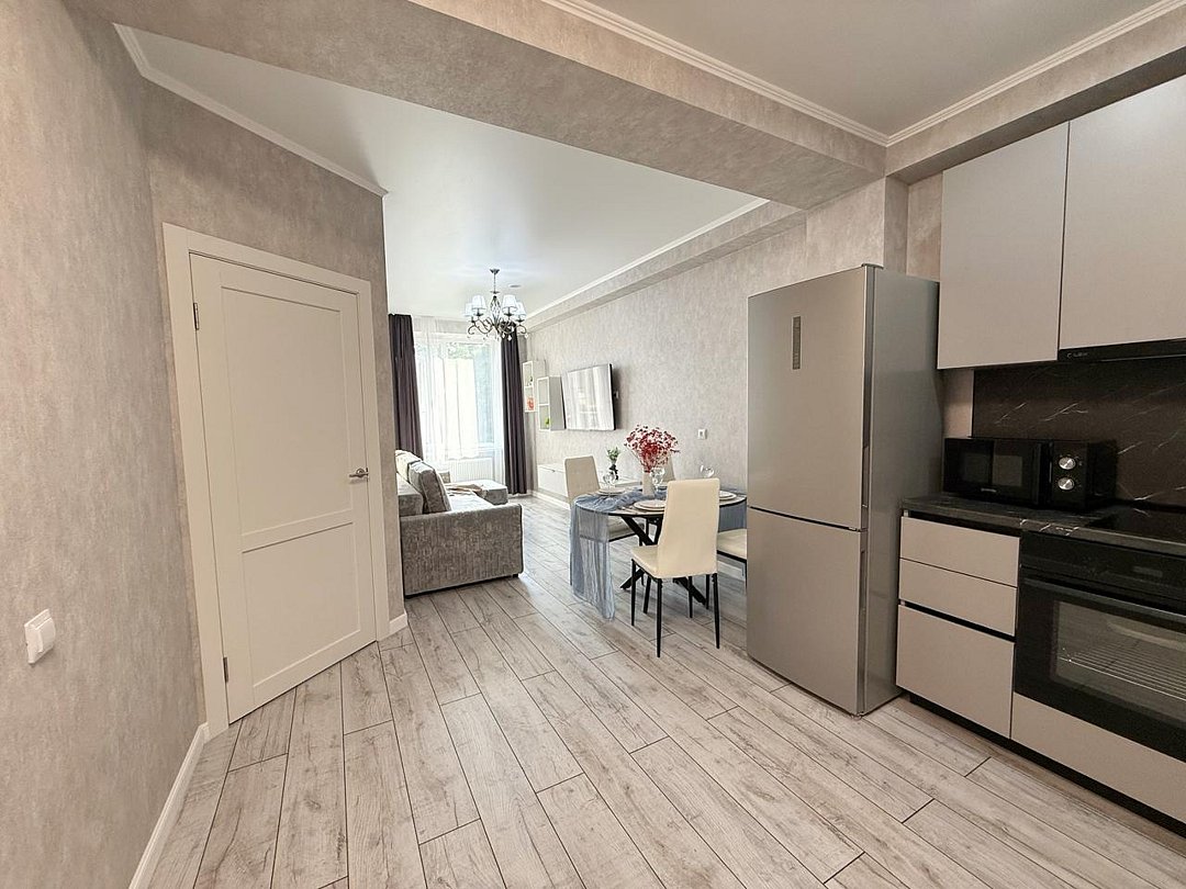 Апартаменты с современным дизайном полностью укомплектованы для комфортного проживания и включают удобные спальные места и свежее постельное белье, кухню, оснащенную бытовой техникой и набором посуды, кондиционер, телевизор и Wi-Fi, большой балкон с зоной отдыха, современный санузел с душем и гигиеническими принадлежностями.