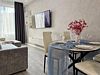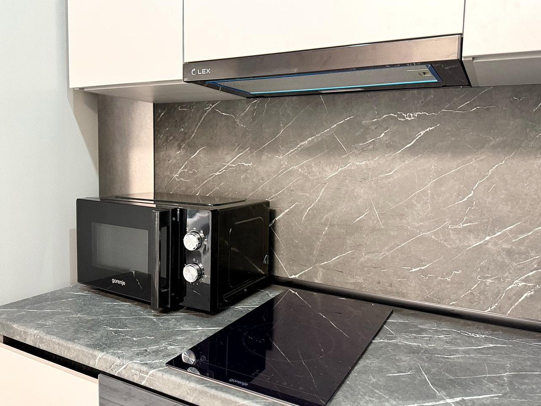 - уютная кухня, оборудованная: варочной панелью, микроволновой печью, холодильником, чайником, полным набором посуды и приборов;