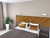 Wi-Fi, фен, электронные замки, душевая кабина, тапочки, две односпальные или большая двуспальная кровать, зеркало, пуфики, чайник, туалетные средства, сплит-система, телевизор с плоским экраном, мини-холодильник, шкаф-купеВ номере