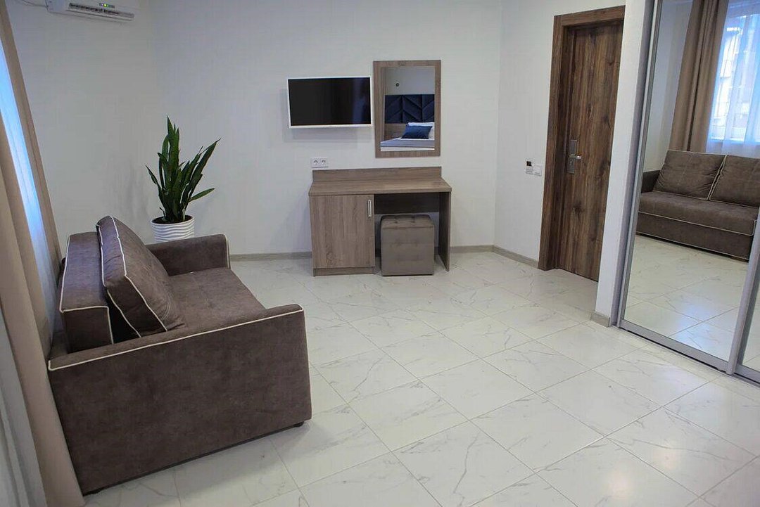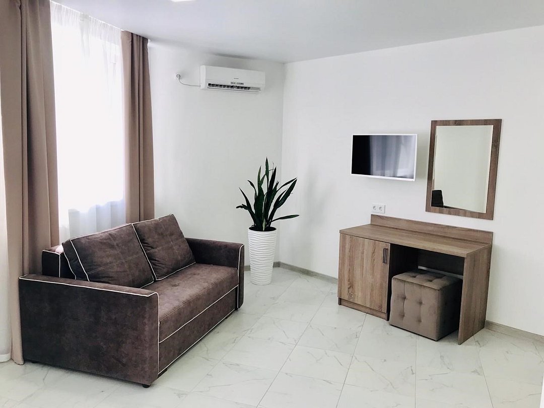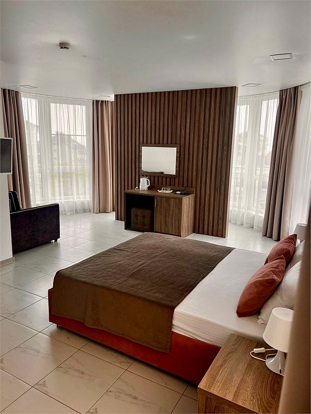 Просторный люкс оснащён всем необходимым для комфортного проживания панорамные окна открывают живописный вид на Чёрное море!Услуги и удобства