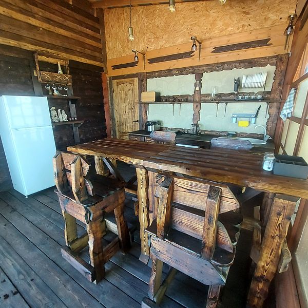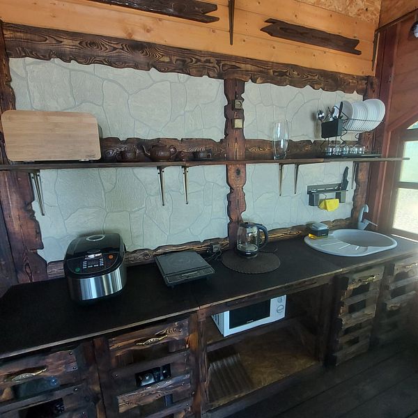 Летняя кухня: микроволновая печь, электрический чайник, набор посуды на 4 персоны, индукционная плита, 2 мини холодильника.