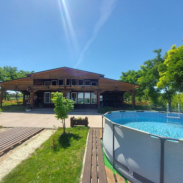 Тип бассейна: открытый бассейн, каркасный бассейнРядом с бассейном: шезлонгиРядом с детской площадкой установлен летний бассейн с фильтрацией.