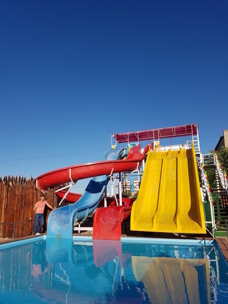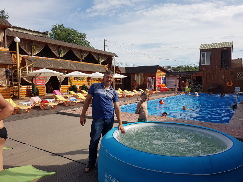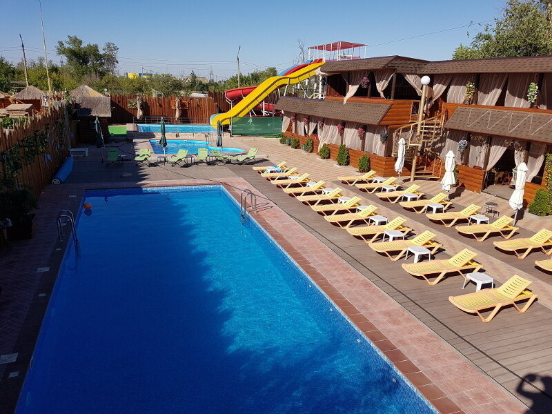 Тип бассейна: открытый бассейнРядом с бассейном: шезлонги, зонтикиВремя работы: от 10:00 до 23:00Аквапарк