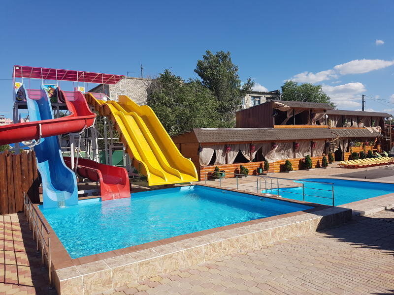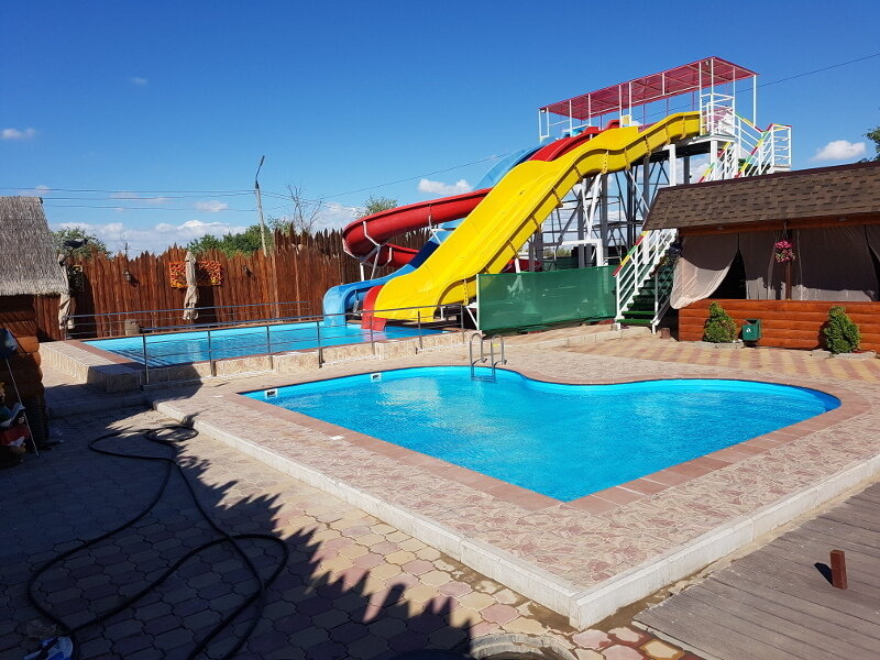 Помимо комфортабельного размещения, Гостевой комплекс предлагает разнообразные развлечения на своей территории. Один из ярких акцентов – открытый бассейн с водными горками. Гости могут насладиться купанием в чистой воде, позагорать на шезлонгах и активно провести время весело скатываясь по горкам.