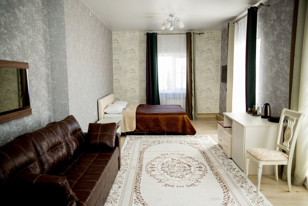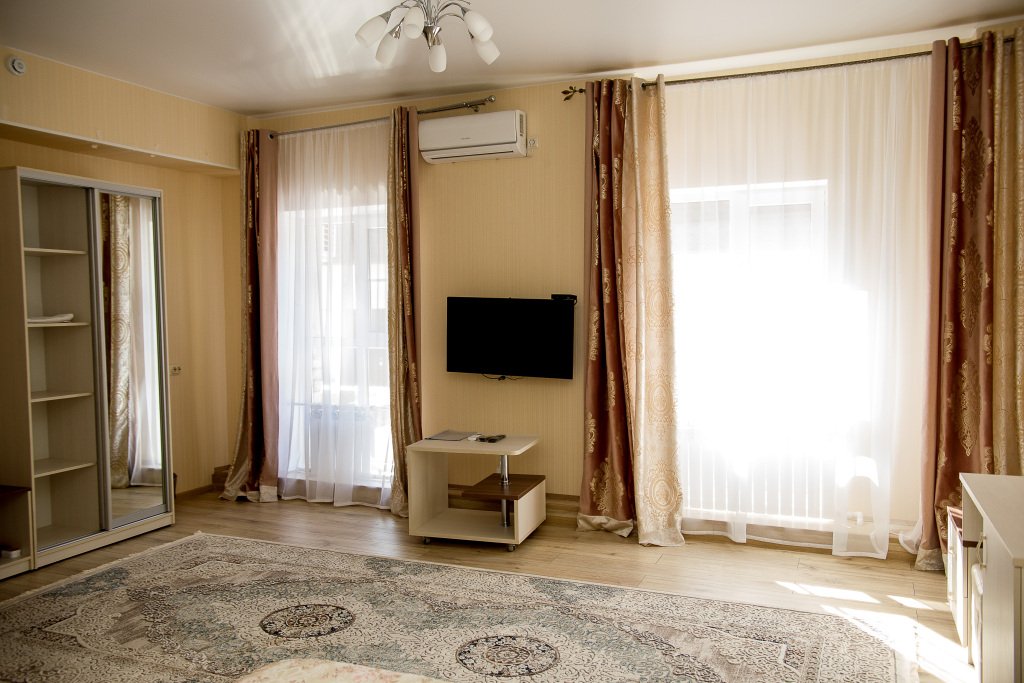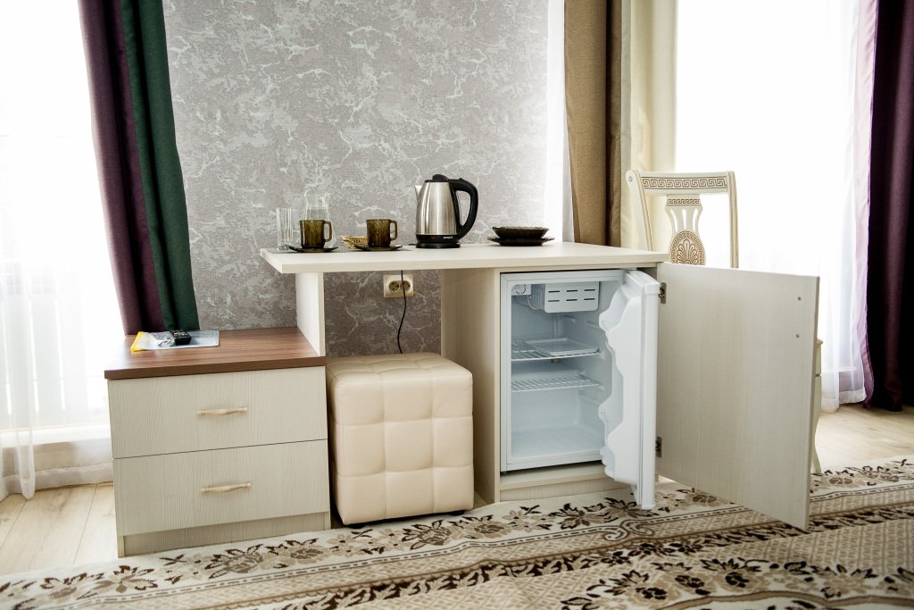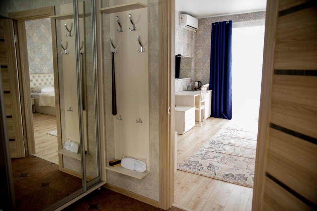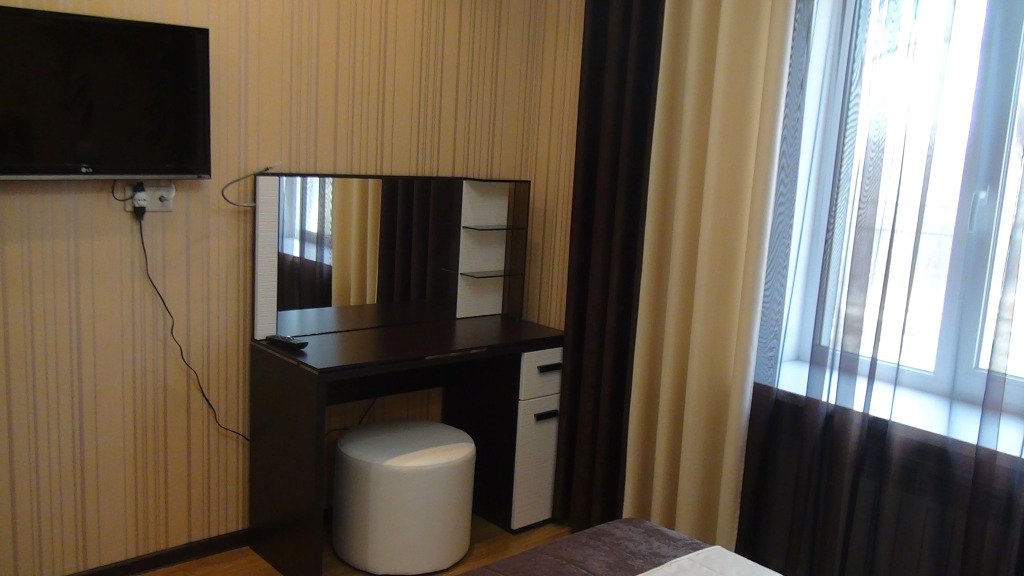 В номере вы найдёте телевизор и халат. Оснащение зависит от выбранной категории номера.