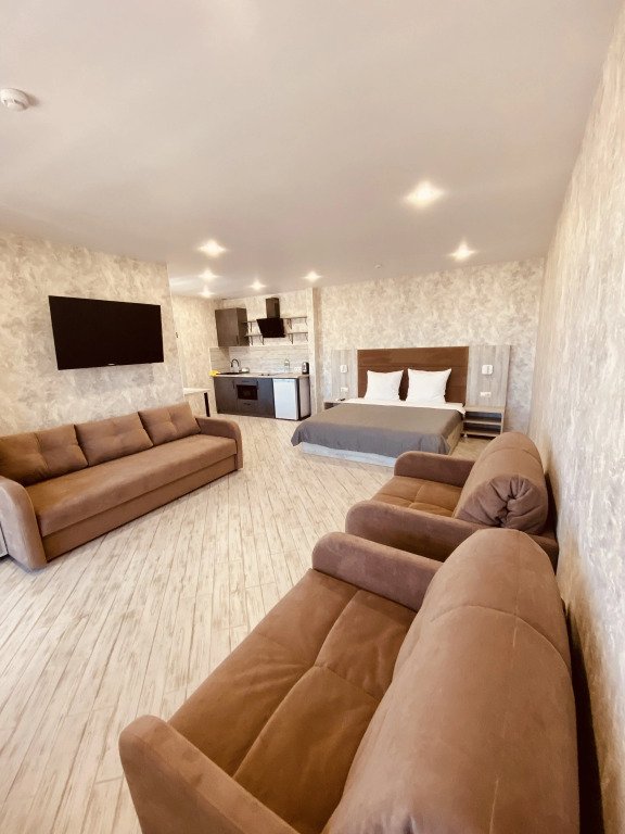 В номере гостей ждут телевизор и халат. Перечисленные услуги есть не во всех номерах.