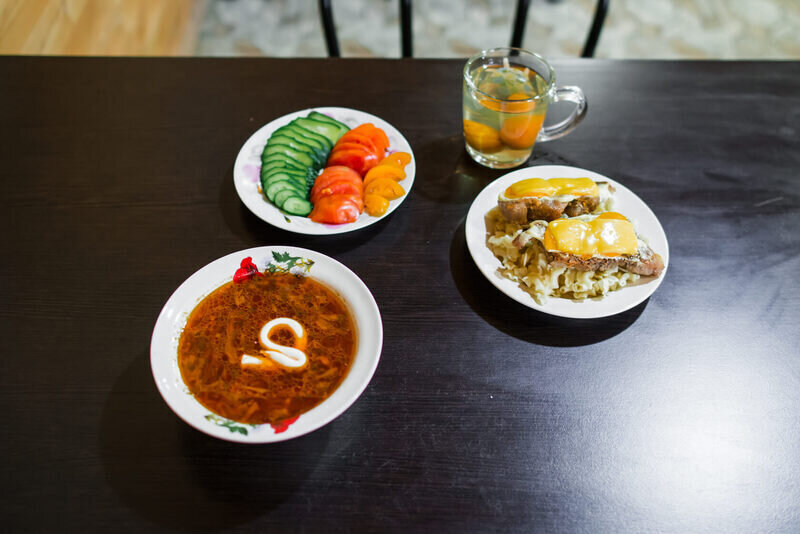 В меню входят блюда, приготовленные из местных продуктов и традиционных рецептов.