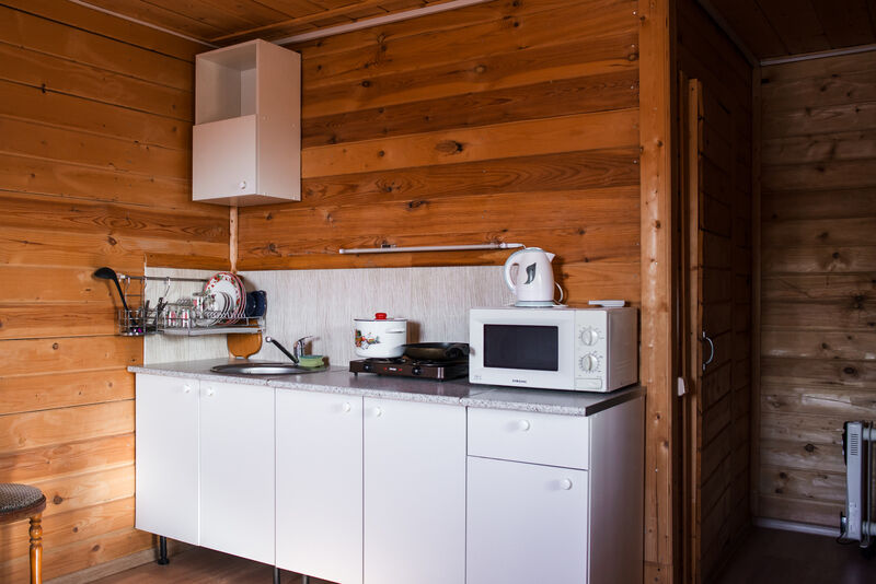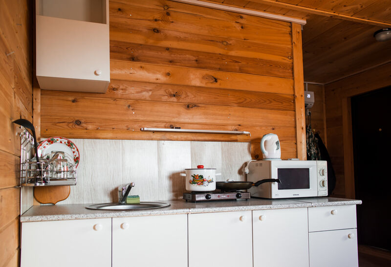 Комфортабельный, отдельностоящий теплый гостевой дом с санузлом и кондиционером. Оборудован кухонным уголком со всем необходимым для приготовления пищи: СВЧ печью, 2-комфорочной плитой, эл. чайником, комплектом посуды и столовых приборов.
