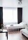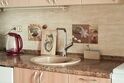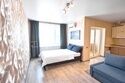 В числе удобств 4 спальных места: одна 2-х спальная кровать и один раскладной диван. Электро-чайник и кофемашина, чай, кофе и питьевая вода — бесплатно.