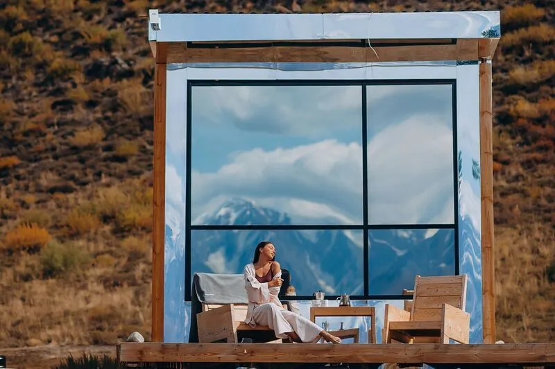 Зеркальный дом с уникальным панорамным видом на на Северо-Чуйский горный хребет станет идеальным местом для уединенного и комфортного отдыха.