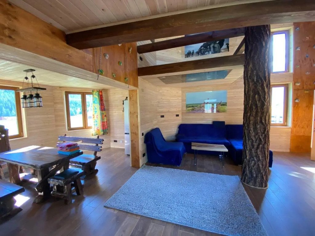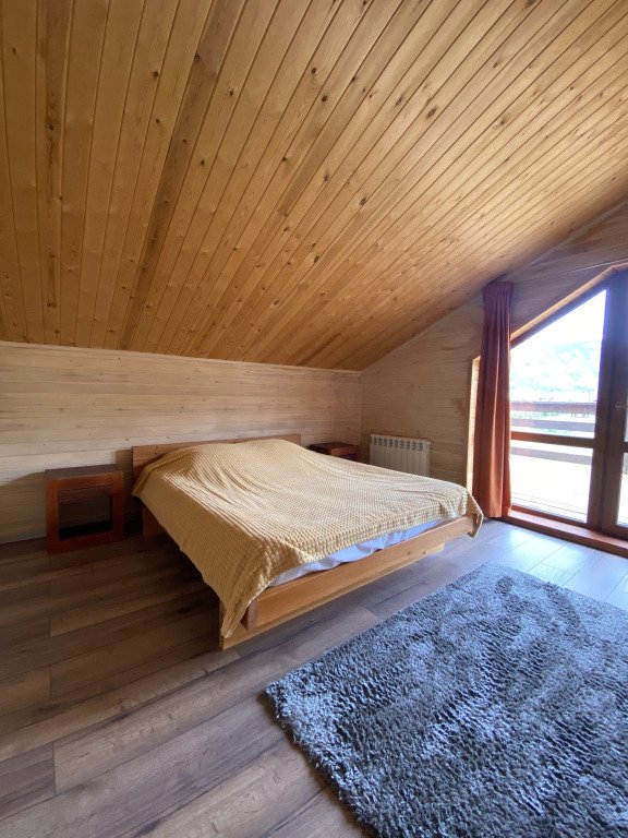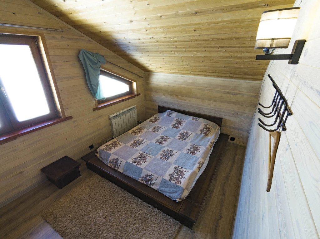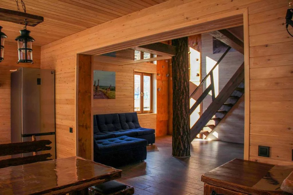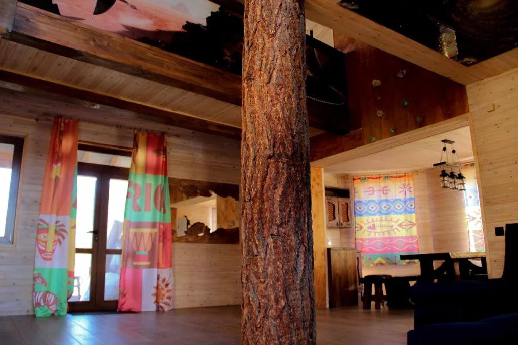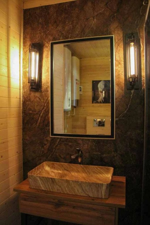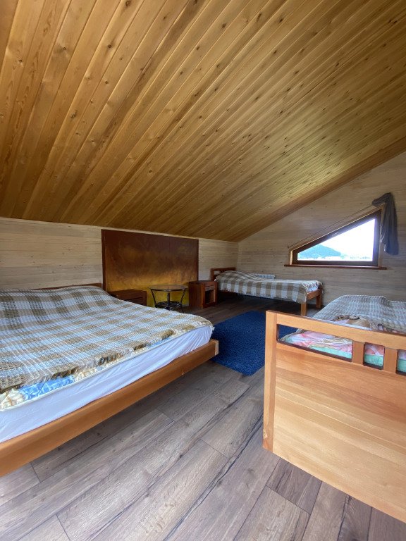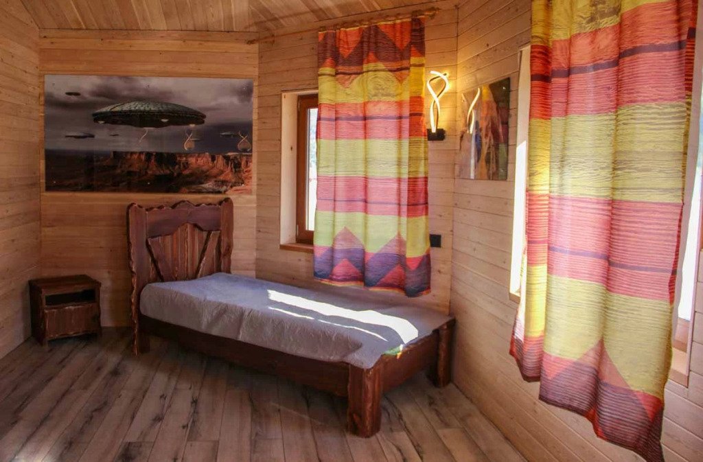 Гостям комплекса предлагается горячая сухая баня, а для ещё большего комфорта есть холодильник, электрический чайник, терраса и обеденный стол. Из окон гости могут любоваться видом на горы.