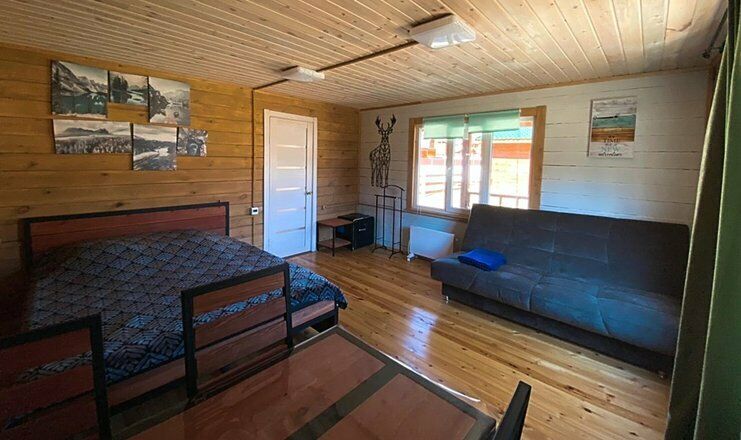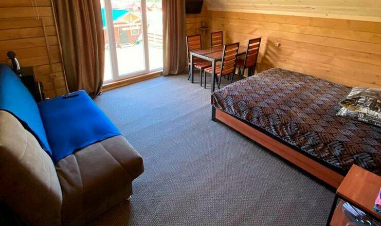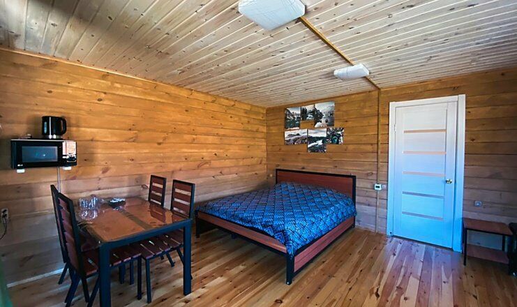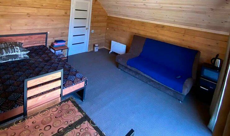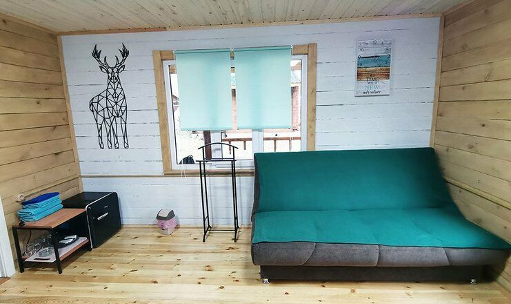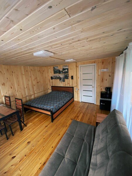 В номере: туалет, душ с душевыми принадлежностями. 4 спальных места: двуспальная кровать с ортопедическим матрасом и удобная диван-кровать. Wi-Fi, ТВ, микроволновая печь, мини-холодильник, посуда, новая мебель. Отдельный вход, т.е. соседи мешать не будут. На территории мангальная зона и баня.