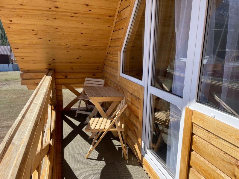 Номер полулюкс на 2м этаже с панорамным окном и видом на горы. Номера теплые: котельная, батареи и теплый пол.