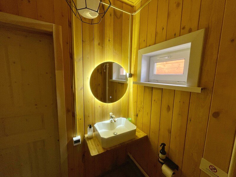 Семейный отдыхДостоинстваОчень симпатичные домики)) Горячая вода с хорошим напором — приятный бонус. Закрытая парковка, балкончики и мангальная зона добавляют комфорта. Однозначно рекомендую.