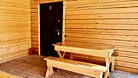 Расположение: номер с отдельным входом и смежной террасой (внутренние торцы корпусов, объединенные общей верандой). Смежная терраса с собственным столом и лавочками.