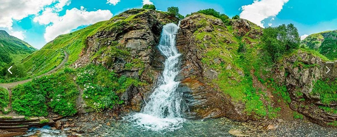 Следующее обязательное к посещению природное чудо - водопад Галдоридон – в переводе это означает «бык и камень». Водопад раскинулся на высоте 2000 метров над уровнем моря в течении одноименной реки, образуя пять каскадов, его высота — 30 метров. Под водопадом образовалась чаша, достигающая в диаметре 10 метров, которая заполнена прозрачной водой. Другое название – Жемчужина. Особенность водопада заключается в том, что он никогда не пересыхает. Даже в самые знойные месяцы, когда нет осадков, он остается полноводным. В зимнее время, отличие от других водопадов, не замерзает полностью. Это обусловлено тем, что питающая его река берет исток у ледников.