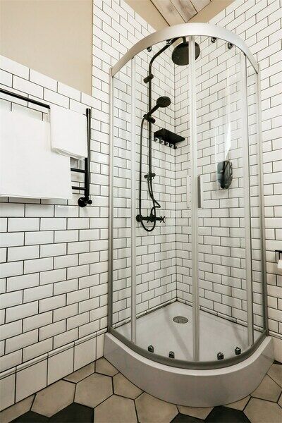 • Во всех номерах есть своя ванная комната. Все ванные комнаты оснащены душевыми кабинами, некоторые из них с теплыми полами