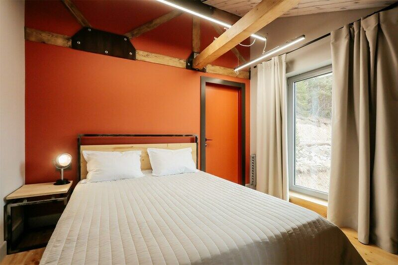 Уютный двухместный номер с одной большой кроватью с видом на ущелье или на лес. Имеет открытую террасу с видом на лес.