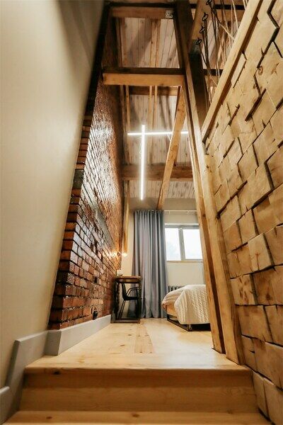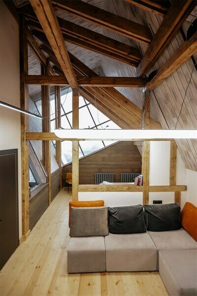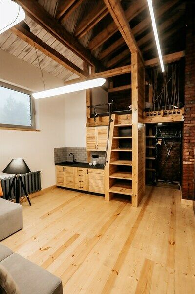 • Третье дополнительное спальное место 3,7 м2 – там будет комфортно двум взрослым. Это уютная антресоль с лесенкой