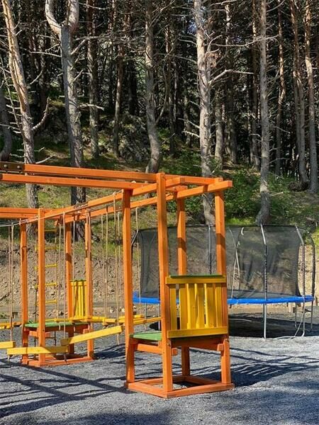 Зона отдыха. где можно разжечь костер, приготовить барбекю и покататься на качелях.