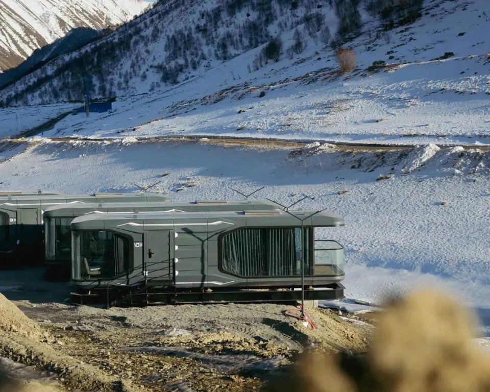 Глэмпинг Astro Base Mamison Hotel располагается в Камсхо, на склонах горнолыжного курорта Мамисон. Комплекс состоит из 20 модульных домов в стиле космических капсул.