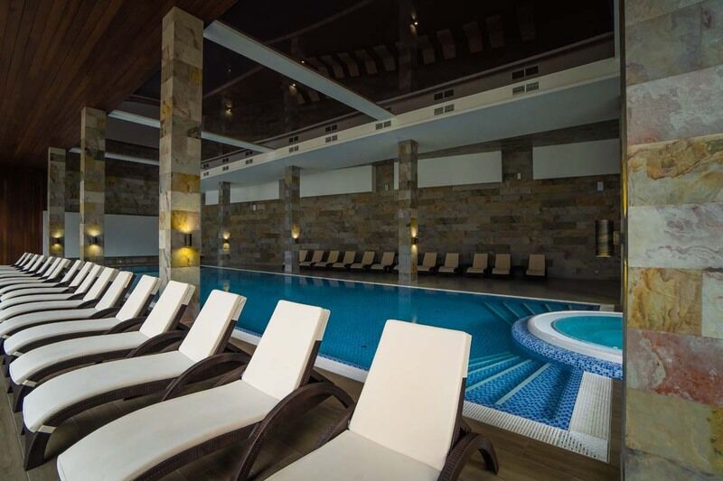 Тип бассейна: крытый бассейнРядом с бассейном: шезлонгиПросторный бассейн с противотоком и гидромассажем — место, где хочется наполниться бодростью утром или отдохнуть после спа-процедур, наслаждаясь незабываемым видом.