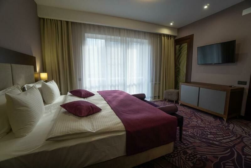 Номера, завтрак соответствуют неплохому сетевому отелю, похожих вариантов в Осетии не нашли. Есть удобная стоянка, особое внимание уделено безопасности: территория отеля огорожена, охрана на входе.