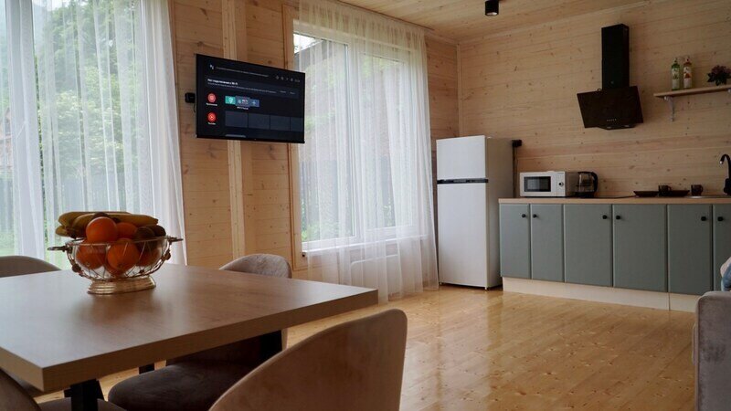 Очаровательный дом с двумя спальнями на втором этаже не только привлекает роскошным видом на величие гор Северной Осетии как из нутри дома, так и снаружи, но и удобным расположением кухни студии на первом этаже. Санузел выполнен из натуральных и экологически чистых материалов в стиле рустик. Этот дом в Скалистых горах демонстрирует спокойную атмосферу с современными удобствами и захватывающими дух видами через панорамные окна.