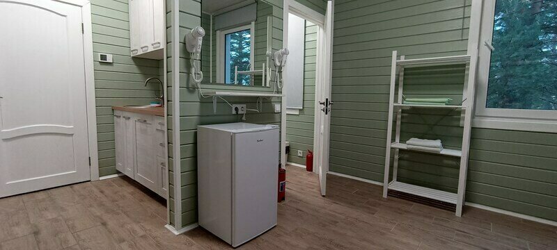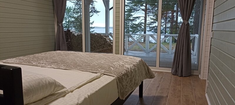 Люкс в здании банного комплекса расположен в 20 метрах от озера. Внутри номера мини-кухня и собственная парная. Снаружи - терраса с самым лучшим видом на Озеро.