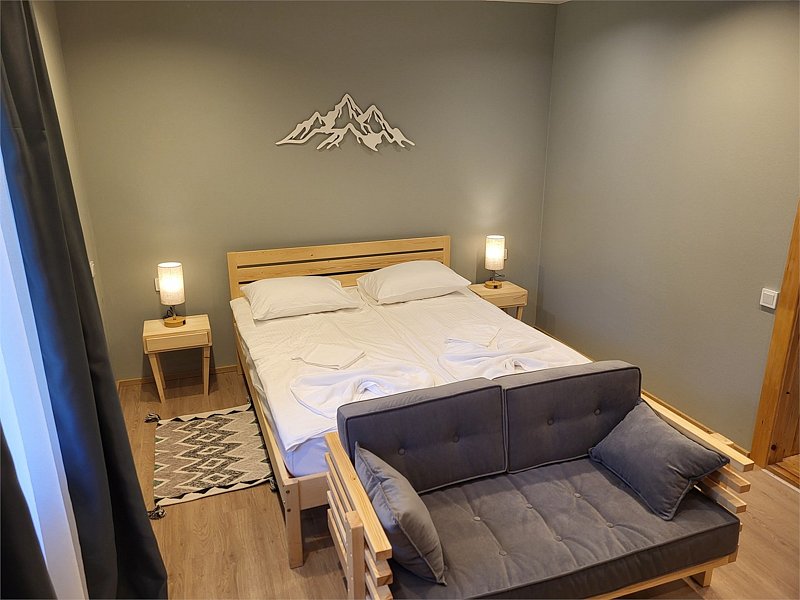 Двухместный номер с двумя отдельными кроватями и диваном. В номере установлен плоский телевизор. В собственной ванной комнате душевая кабина. На раскладном диване могут разместиться дополнительные гости. Доступен бесплатный Wi-Fi. Завтрак включен с стоимость проживания.