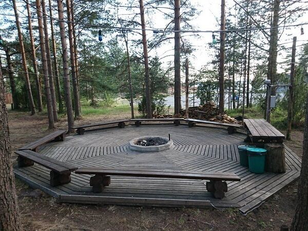 На территории работает кафе, а также оборудованы мангальные площадки. К услугам гостей предоставляется банный комплекс, беспроводной интернет, открытые спортивные площадки, настольный теннис, парковка. Зимой на территории заливается каток, устанавливается ледяная горка. Для гостей по запросу организуются экскурсии по окрестностям, рыбалка, доступен прокат спортивного инвентаря – лодок, велосипедов, рыболовных снастей, снегоходов. Для детей на территории организована игровая площадка. В 200 метрах расположен собственный пляж с пирсом.