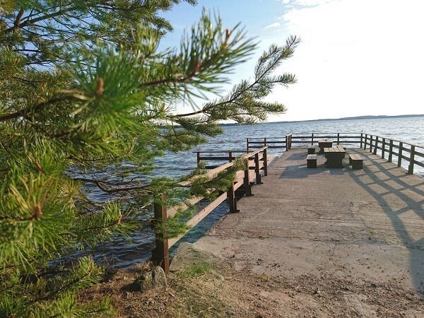 Семейный отдыхДостоинстваПрирода,чистый воздух,уютный номер с удобствами,ухоженная ,чистая территория,есть песчаный пляж в 10 мин.неспешной хоть бы, возможность взять напрокат лодку,завтрак включен в стоимость. Приезжали в июле на два дня, была хорошая погода и мы успели загореть.Есть площадка для пикника.