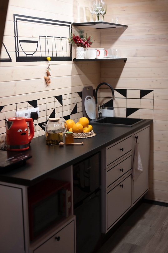 Внутри домика гостей ждет увлекательный выбор настольных игр, которые позволят весело провести время с друзьями или семьёй. После насыщенного дня можно расслабиться в традиционной японской купели Фурако, наполненной целебной морской солью. Для любителей домашних животных предусмотрено размещение с питомцами, чтобы каждый член семьи мог насладиться отдыхом.