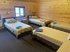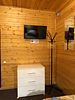 Двухкомнатный номер выполнен из натурального дерева, с пятью кроватями и прикроватными тумбочками, телевизором.