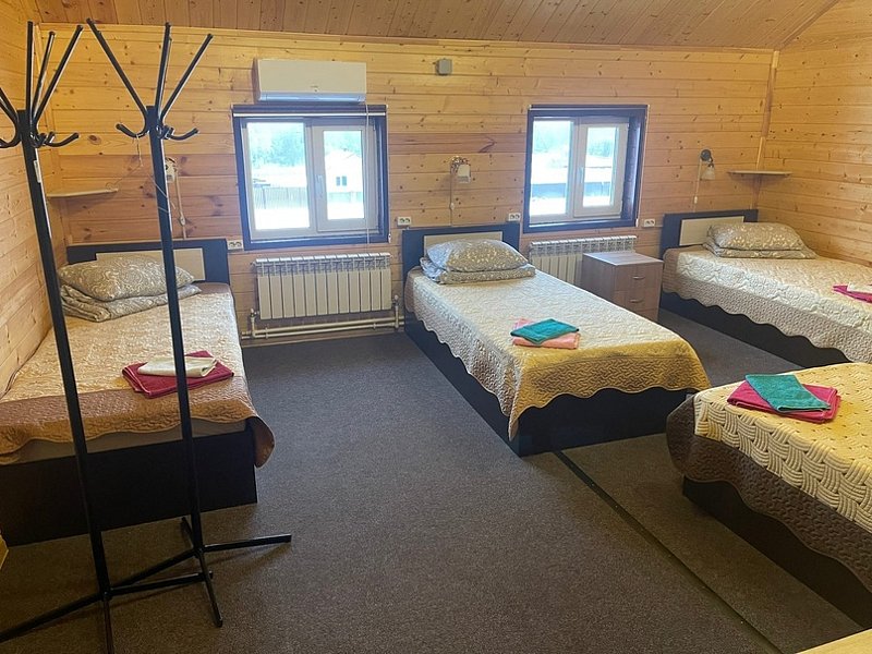 Однокомнатный номер выполнен из натурального дерева, с тремя кроватями и прикроватными тумбочками, телевизором. Номера располагаются на втором этаже, номер рассчитан на проживание одного, двух или трех человек. Всегда чистое белье, два полотенца на гостя.