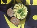 Организовать питание можно самостоятельно. Для этого есть необходимое оборудование, мангалы. Продукты необходимо привезти с собой. На базе работает столовая. В ней можно заказать трехразовое питание.